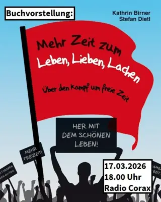 Aus dem Veranstaltungstext: Dem Versprechen von weniger Arbeit und mehr Zeit für Erholung und Genuss wohnt ein utopisches Element inne: die Vorstellung eines Lebens ohne Mühsal und Plackerei. Kein Wunder also, dass es gerade die Kämpfe um kürzere Arbeitszeiten, für mehr Freizeit, mehr Urlaub, freie Wochenenden und eine möglichst selbstbestimmte Gestaltung der freien Zeit sind, die die Massen besonders enthusiastisch auf die Straße treiben. Seit Entstehen der Arbeiterbewegung ist das Ringen um kürzere Arbeitszeiten zentraler Gegenstand von Arbeitskämpfen und gerade in den letzten Jahren erlebt der Kampf um freie Zeit ein Comeback. Dabei geht es auch um mehr Selbstbestimmung und flexible Arbeitszeitmodelle zugunsten der Lohnabhängigen.